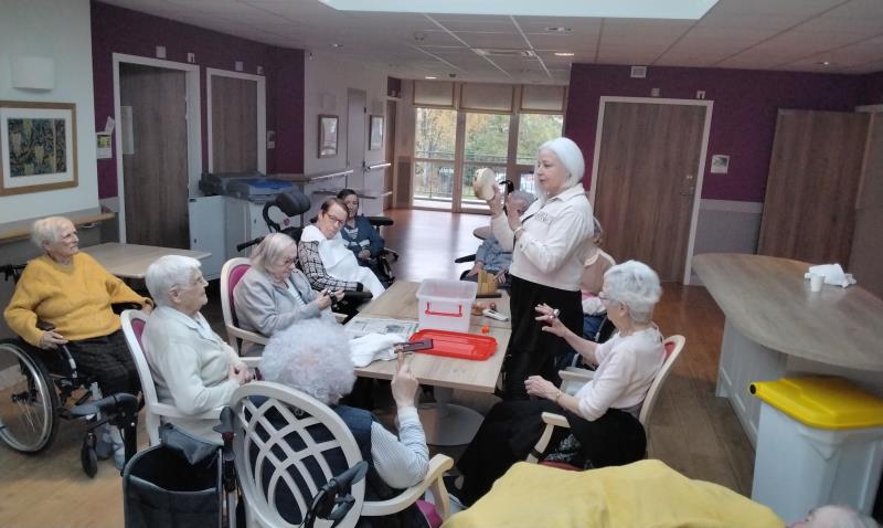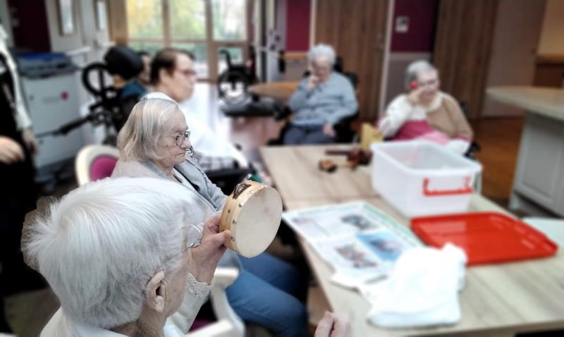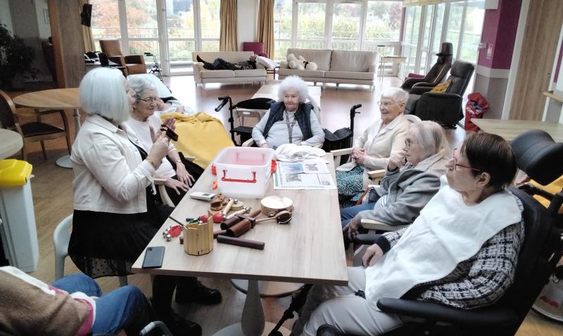L'éveil musical pour les personnes dépendantes et très dépendantes est une approche thérapeutique qui utilise la musique pour stimuler, les sens, les émotions et la mémoire. Il vise à améliorer la qualité de vie des résidents en favorisant le bien être, la communication et l’interaction sociale. L'animatrice lors de cette séance d'éveil musical a inclus le jeu d'instruments simples. Les différents sons, ont pu créer des réactions, stimuler les résidents. Un moment de partage et d'ouverture d'espace de communication.