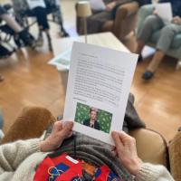 Publiée le 10/03/2026Mardi 3 mars, les chemins de la poésie nous ont amené à parler d'amour, avec un texte de Frida KAHLO. Entre 15 et 18 résidents ont écouté, ou lu à voix haute ou basse. Puis ce fut l'occasion de parler de nos chéris, nos amoureux, nos maris, ceux que nous avons eu comme eux que nous aurions aimé [...] Lire la suite